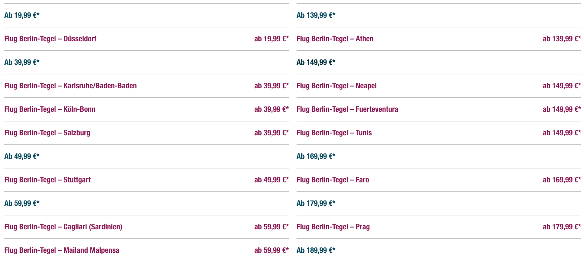 Billigflüge ab Berlin - aktuelle Angebote des Tages