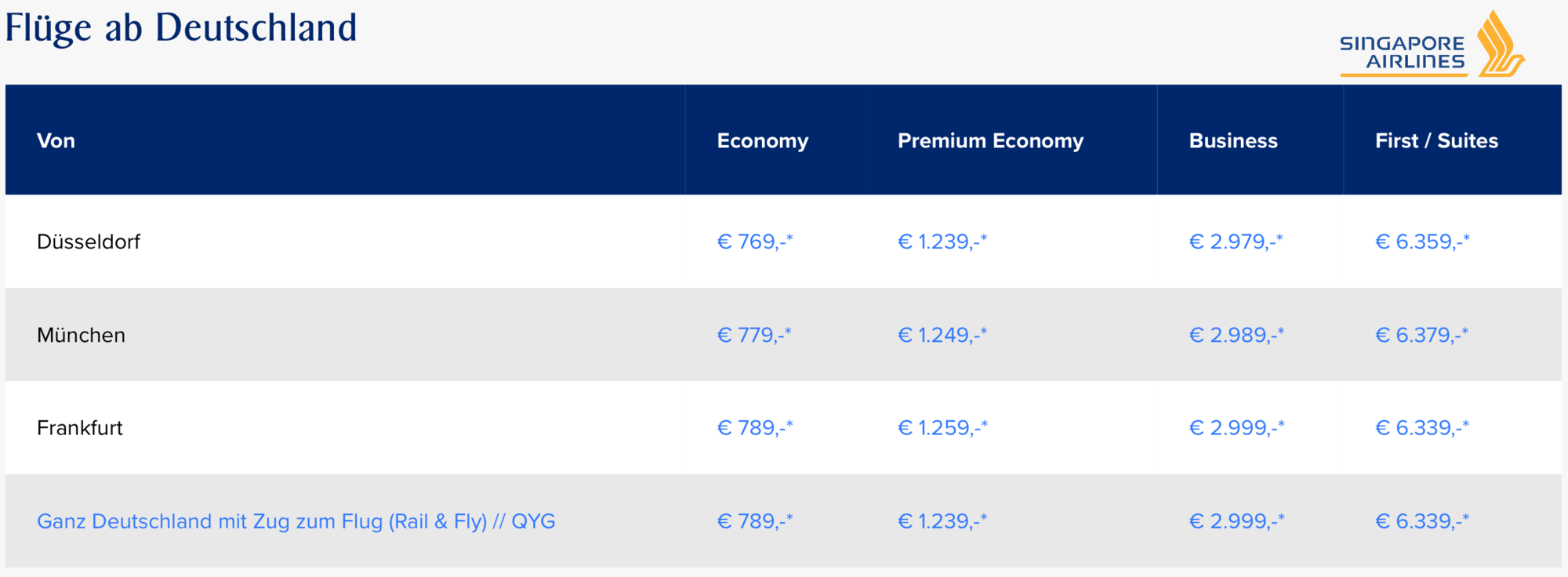 Singapore Airlines Flugdeals ab München